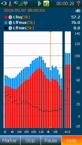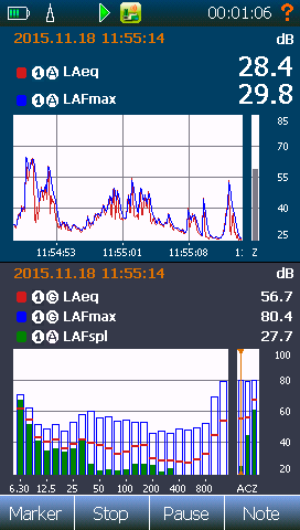 Simultaneous measurement of SPL, Leq, LeqI, LMax, LMin, LE, LEI, LPeak, Ln and Tmax5.