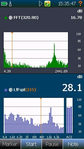 Frequency analysis: 1/1 and 1/3 octave real time filters from 0,4 Hz to 20 kHz.